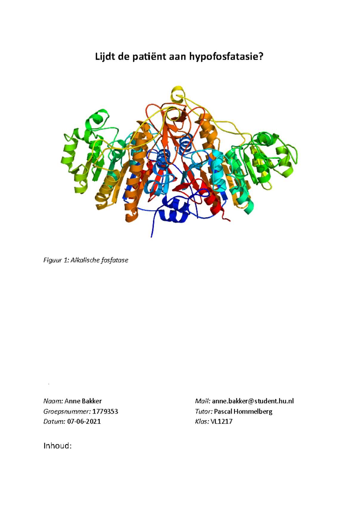 Hypofosfatasie Lijdt de patiënt aan hypofosfatasie? Figuur 1 Alkalische fosfatase Naam Anne