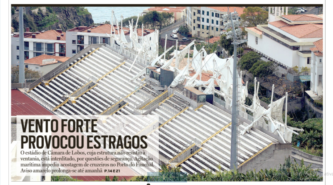 Vento rebenta com cobertura das bancadas do estádio de Câmara de Lobos