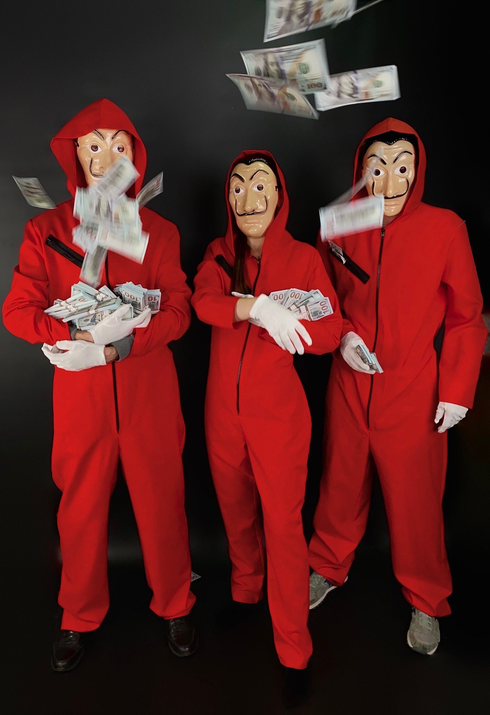 Halloween Red Jumpsuit Costume Money Cosplay Outfits Adult Unisex Men Women Coveralls with Mask. 4.3 out of 5 stars 28. $39.95 $ 39. 95. FREE delivery Tue, May 7 .. La Casa De Papel Money Heist Group Photo T-Shirt, Adults, S-5XL, Black, Official Merchandise. 4.0 out of 5 stars 23.