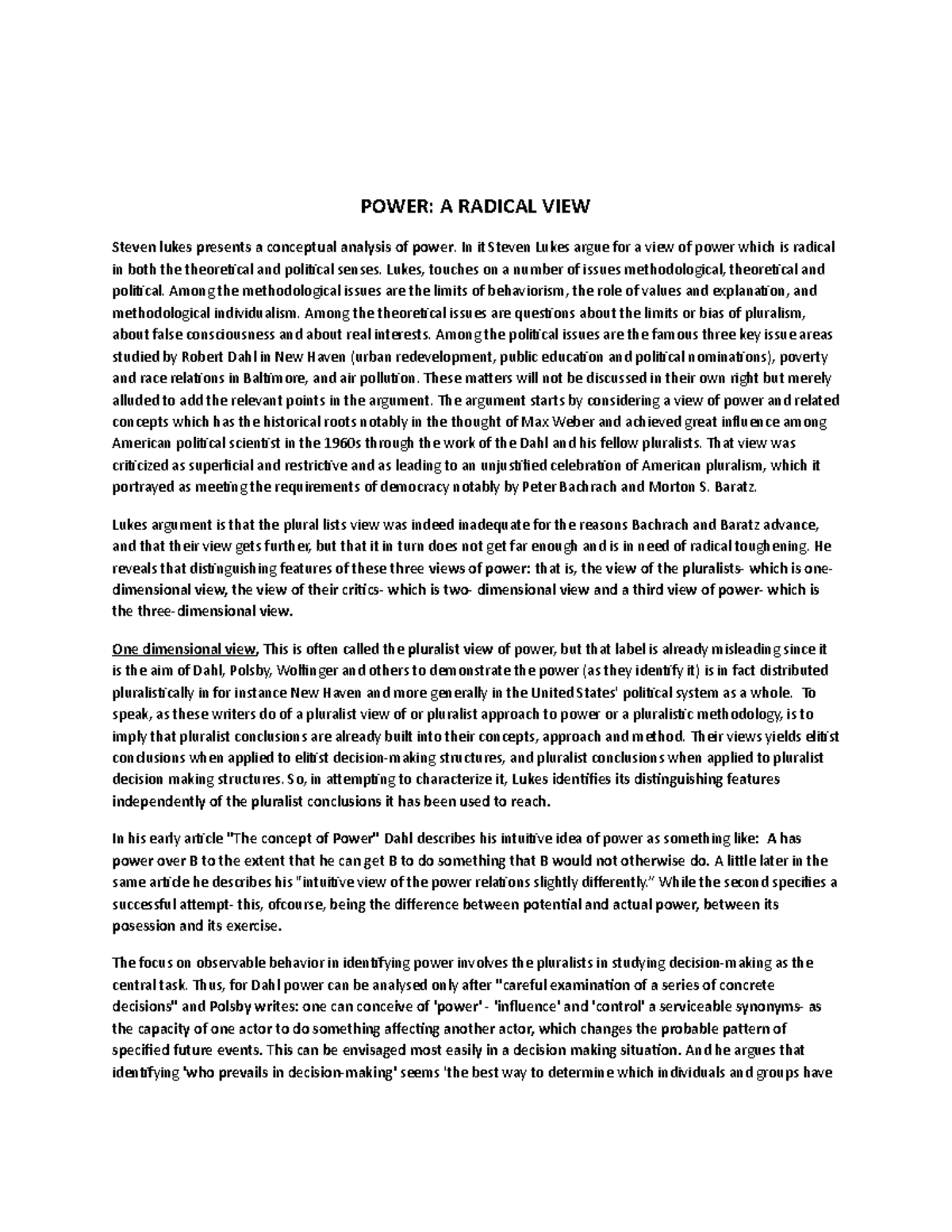 Steven Lukes power a radical view POWER A RADICAL VIEW Steven lukes presents a conceptual