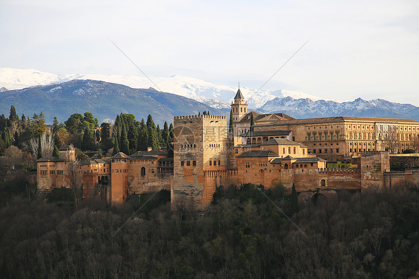 雪山下的阿尔罕布拉宫高清图片下载正版图片501565598摄图网